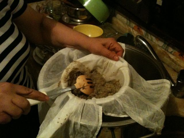 Makarna süzgeci veya delikli benzer bir kap içerisine serdigimiz tulbent ile kaynayan karışımı başka bir tencereye süzüyoruz. Elde ettigimiz sıvıya ŞIRA deniyor.