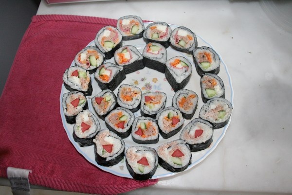 Madem öyle, ben de evde sevdiğim malzemeler ile sushi yapayım dedim, Pastırmalısından ezine peynirlisine türlü çeşit denedim hepsi ağız tadımıza layık