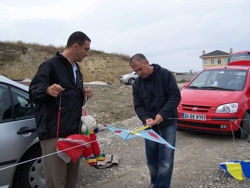 bir başımıza uçurtmaları açmaya başladık