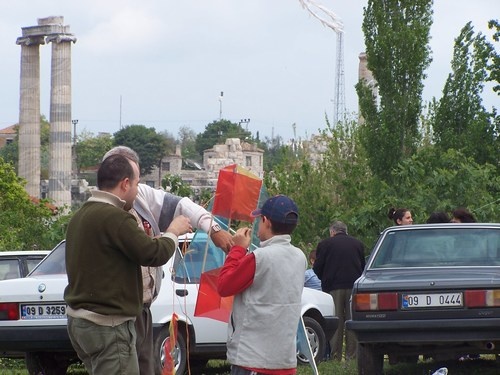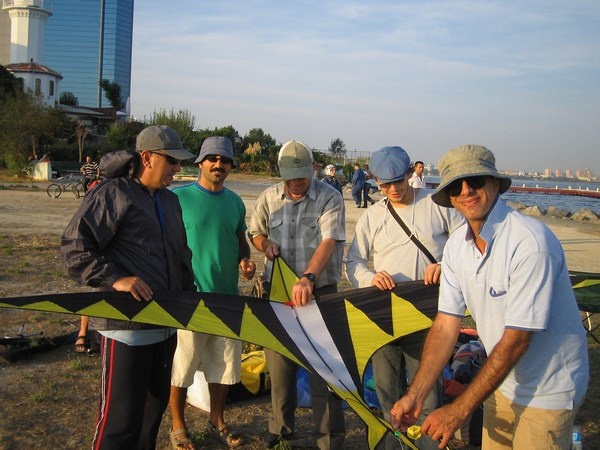 Uçurtma açıldıkça renkleri gören Emin bey yanımıza geliyor,
